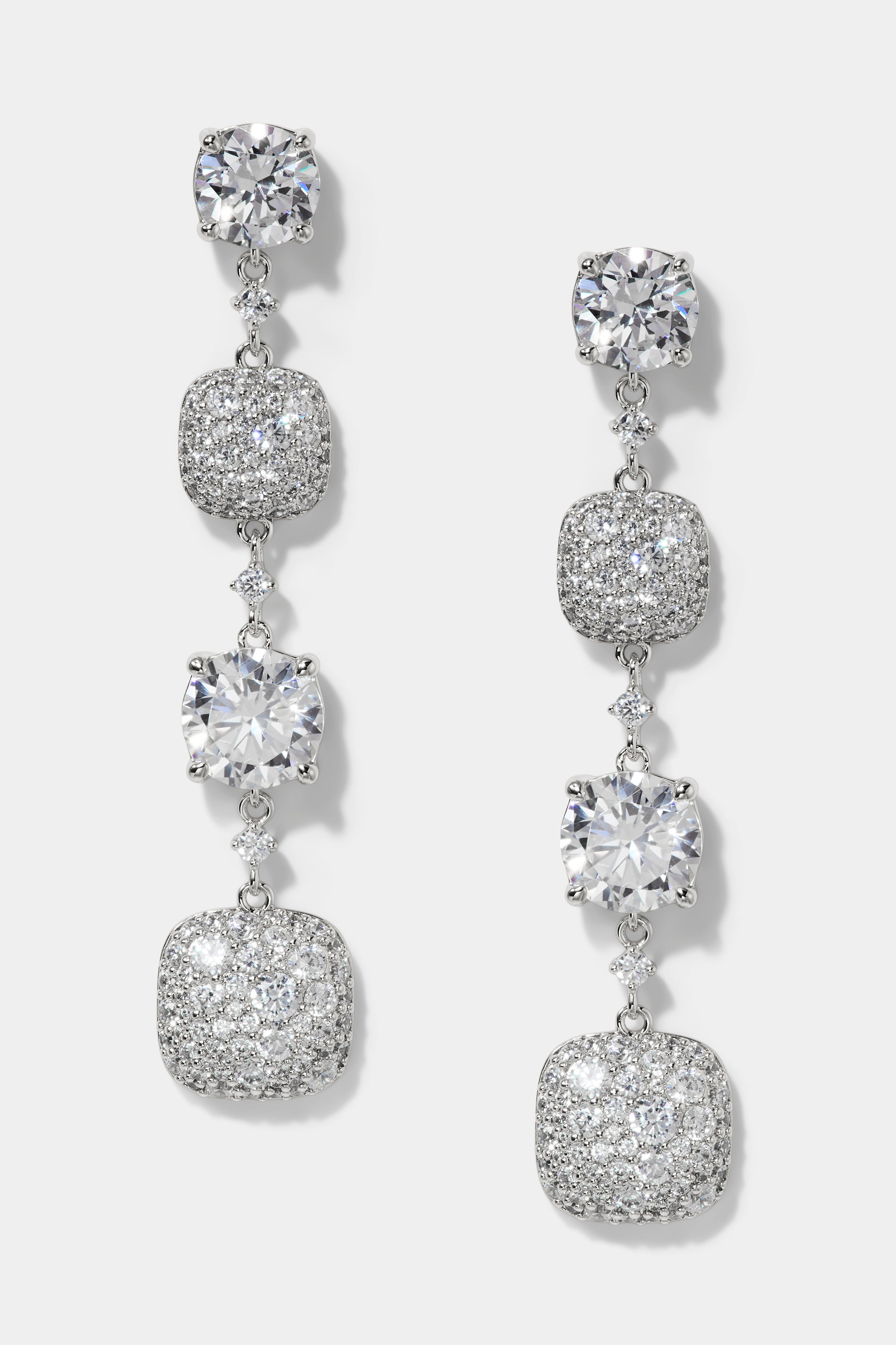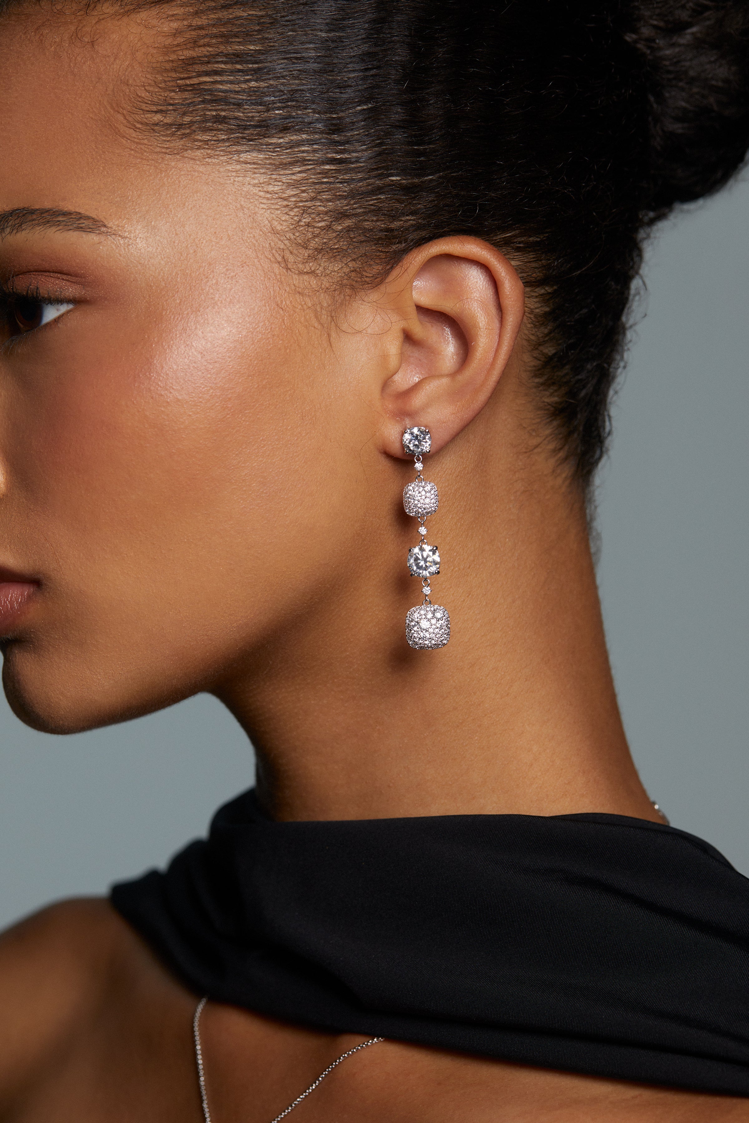 Effortlessly elegant with a modern edge. These linear earrings cascade with crushed pavé cushion drops, bringing a dynamic sparkle that complements every outfit.