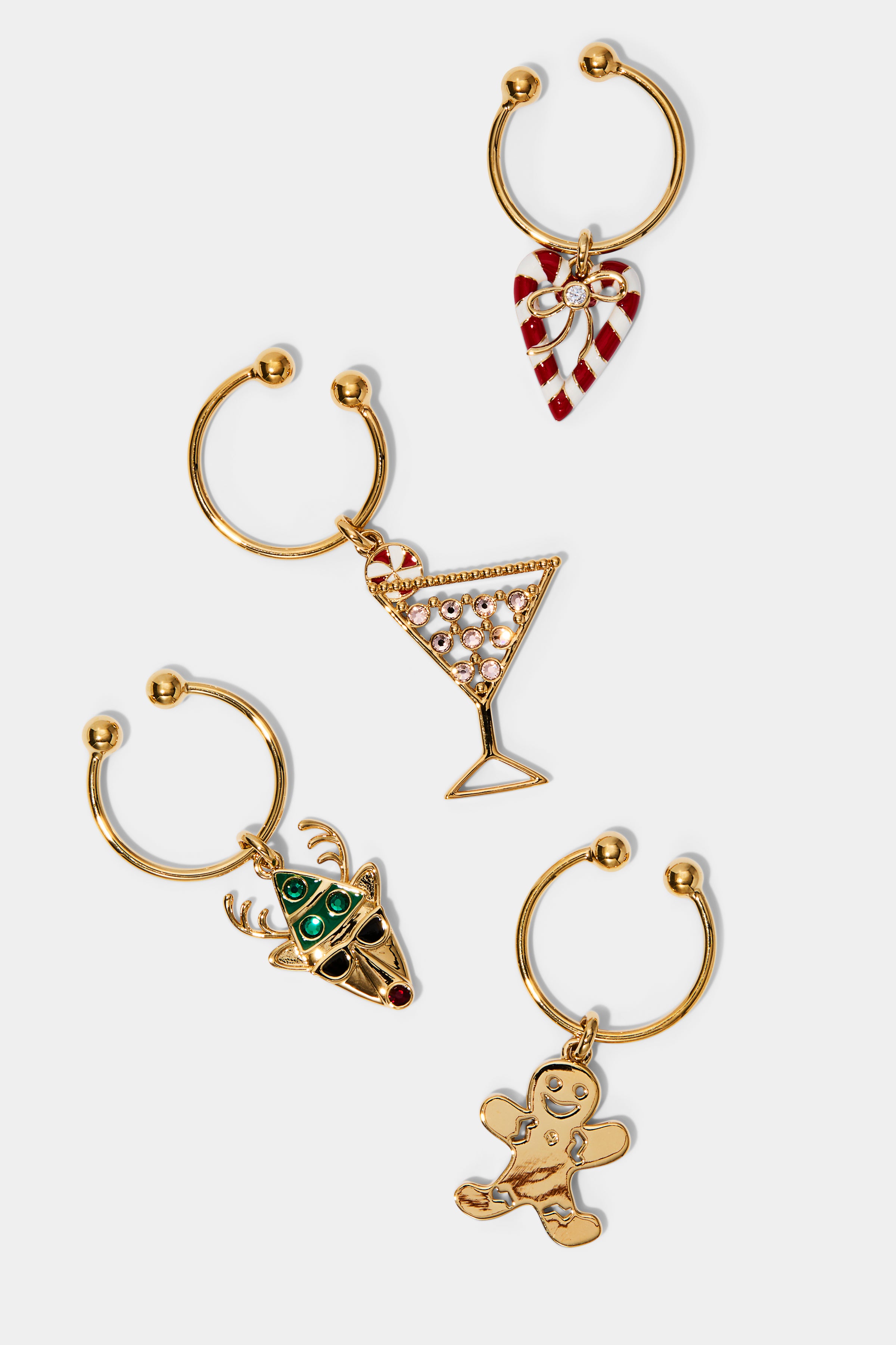 Spread seasonal joy, not germs, with this set of 4 playful holiday wine charms that bring fun and cheer to any glass while keeping drinks easily identifiable.  Every sip will feel merry and bright!