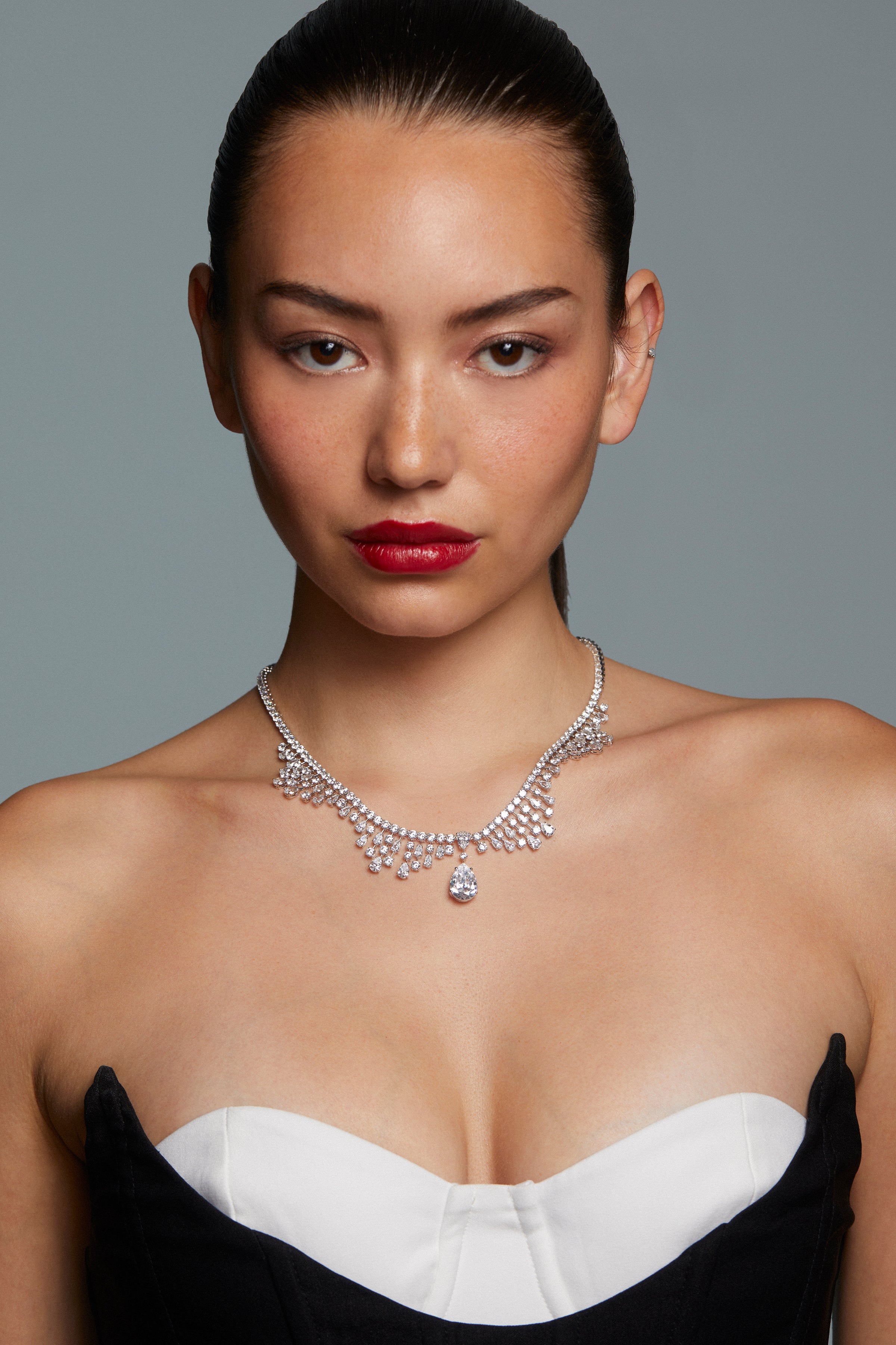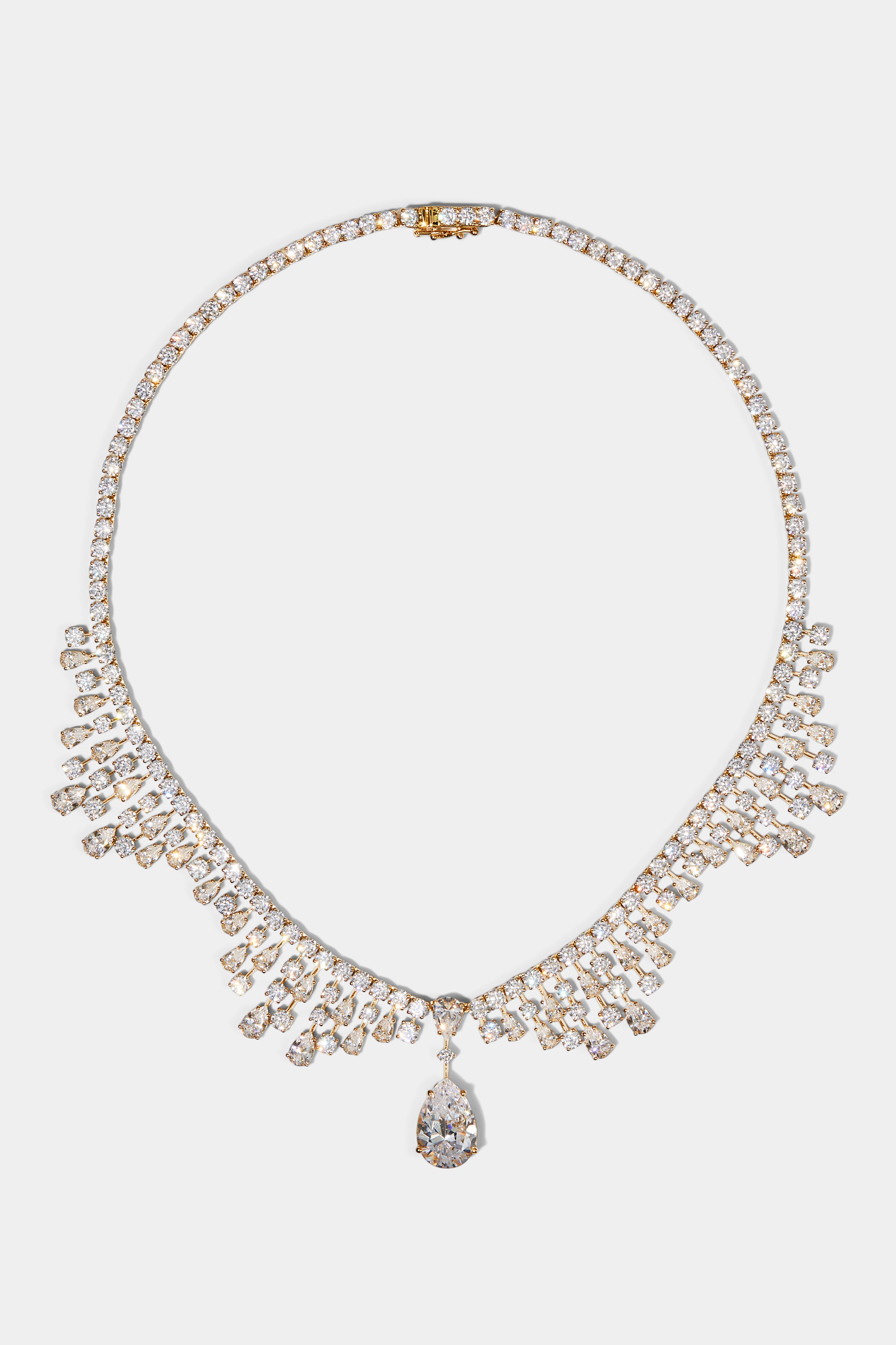 Pure drama, pure glamour. Oversized fancy-cut stones in a cascading silhouette create a necklace worthy of the spotlight. Whether you’re headed to a special event or making your own entrance, this showstopper is made to turn heads.