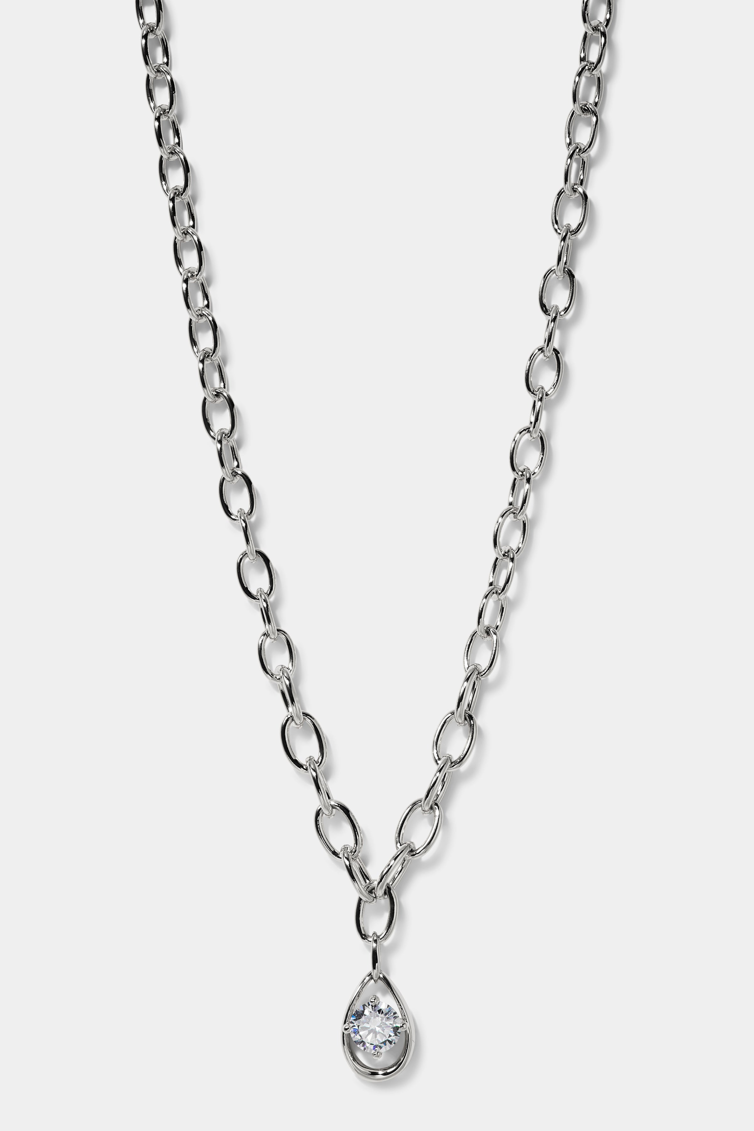 Bring modern shine and fluid movement to your neckline with this versatile chain drop necklace. Integrated CZ accents glimmer along every link, catching the light with subtle sophistication. Whether layered with your favorite chains or worn alone, this piece transitions effortlessly from day to night, making it perfect for both everyday styling and evening occasions.