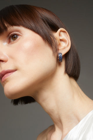 PERFECT TENNIS BLUE CZ 2.5 MM X 12 MM HUGGIE EARRINGS