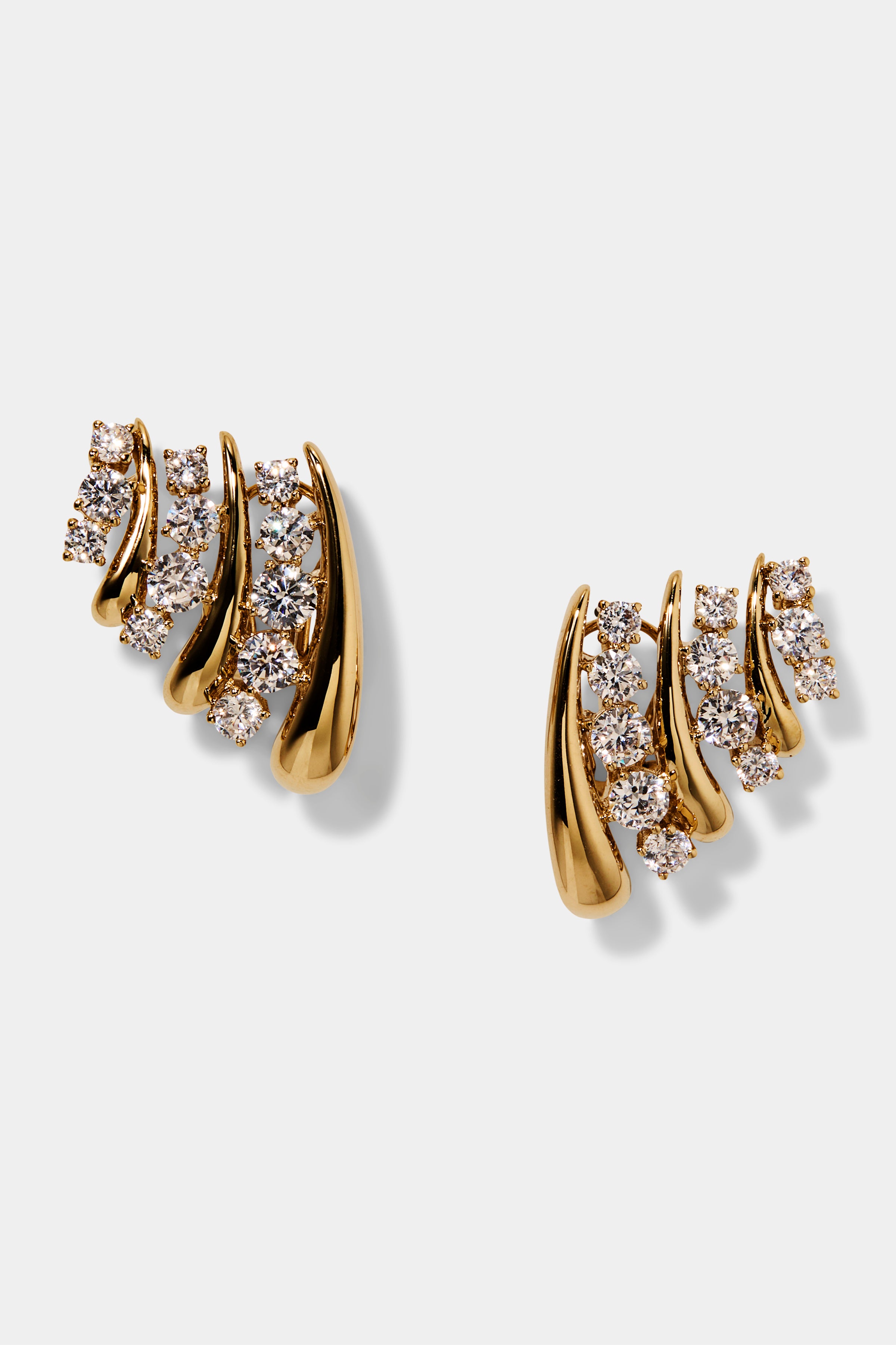 Designed to make an impact, these sculptural hoops feature layered J-shaped arcs accented with rows of luminous cubic zirconia for dimension and depth. The multi-row design delivers high-shine sparkle with a modern edge, statement-making yet refined.