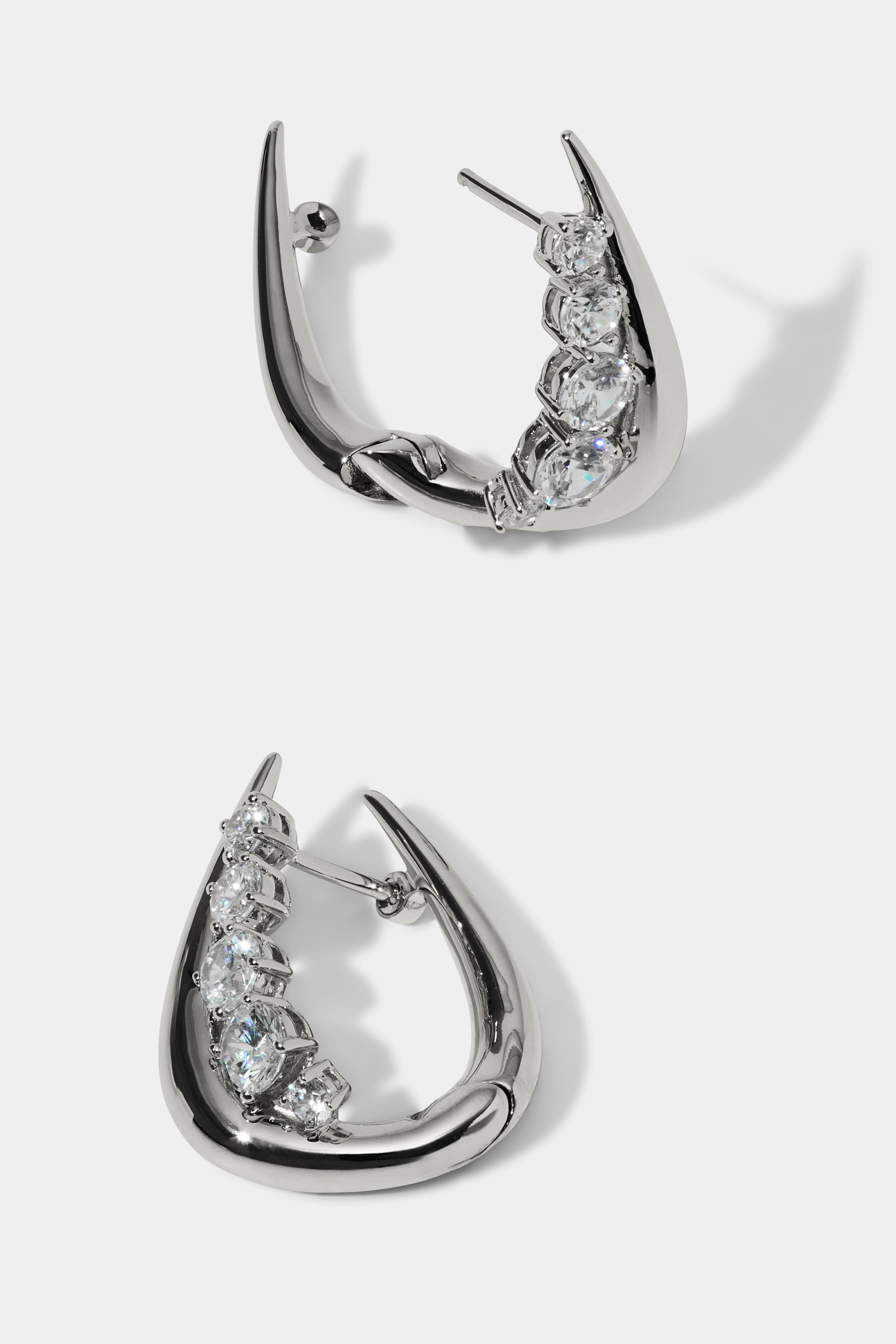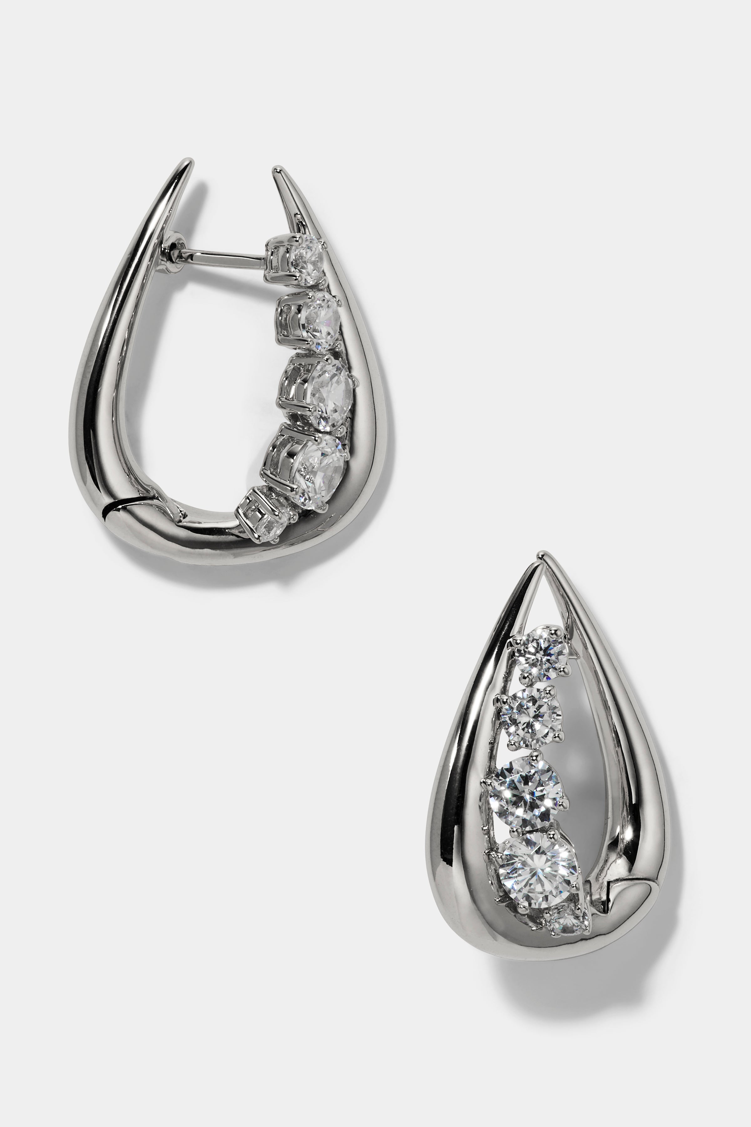 These huggie earrings deliver bold sparkle in a sleek, close-to-the-ear silhouette. Designed with a sculptural polished metal frame and accented with brilliant cubic zirconia, this modern huggie brings elevated shine to everyday looks while still making a statement.