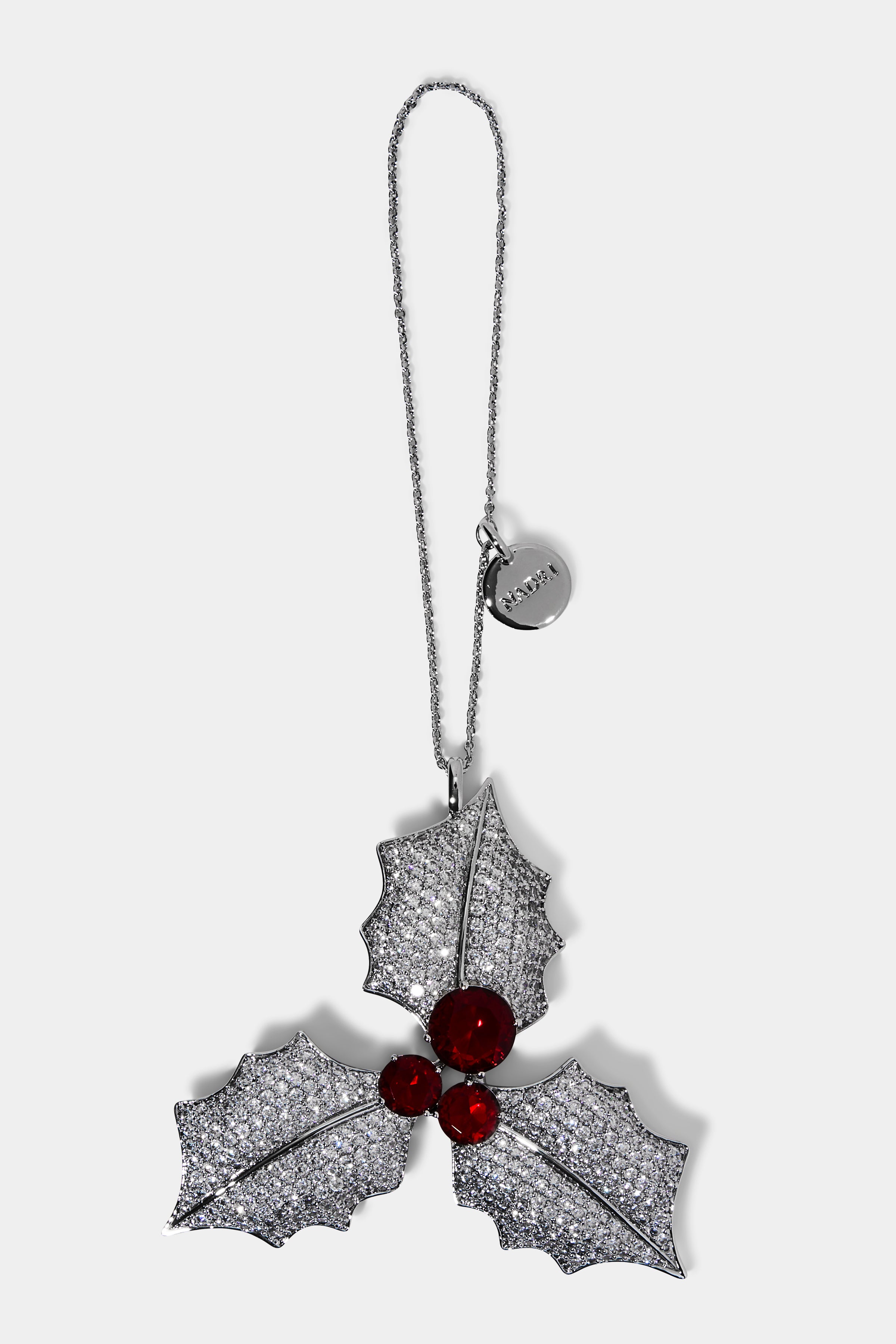 A sparkling twist on a holiday classic. This holly-inspired ornament glows with vibrant red, adding festive brilliance to your décor.