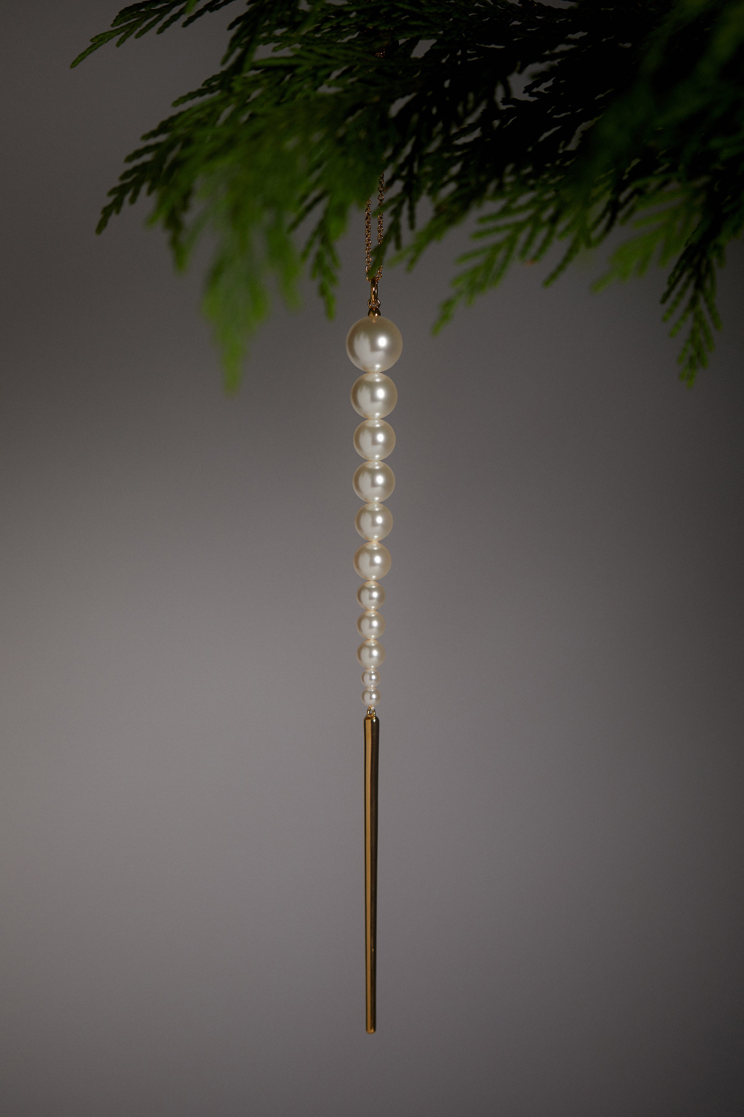 Elegant and refined, this graduated pearls icicle ornament drips with sophistication and subtle shine - perfect for creating luxe holiday decor!