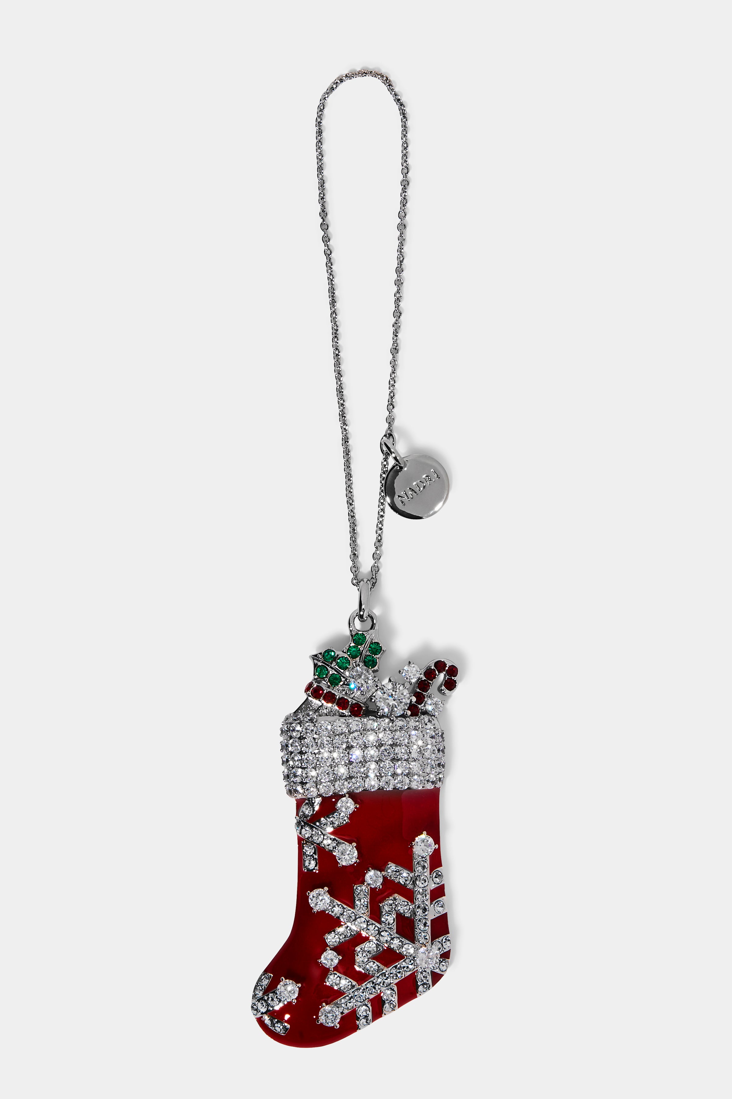 Stuffed with sparkle. This embellished stocking ornament brings a playful touch to your décor, twinkling with festive charm.
