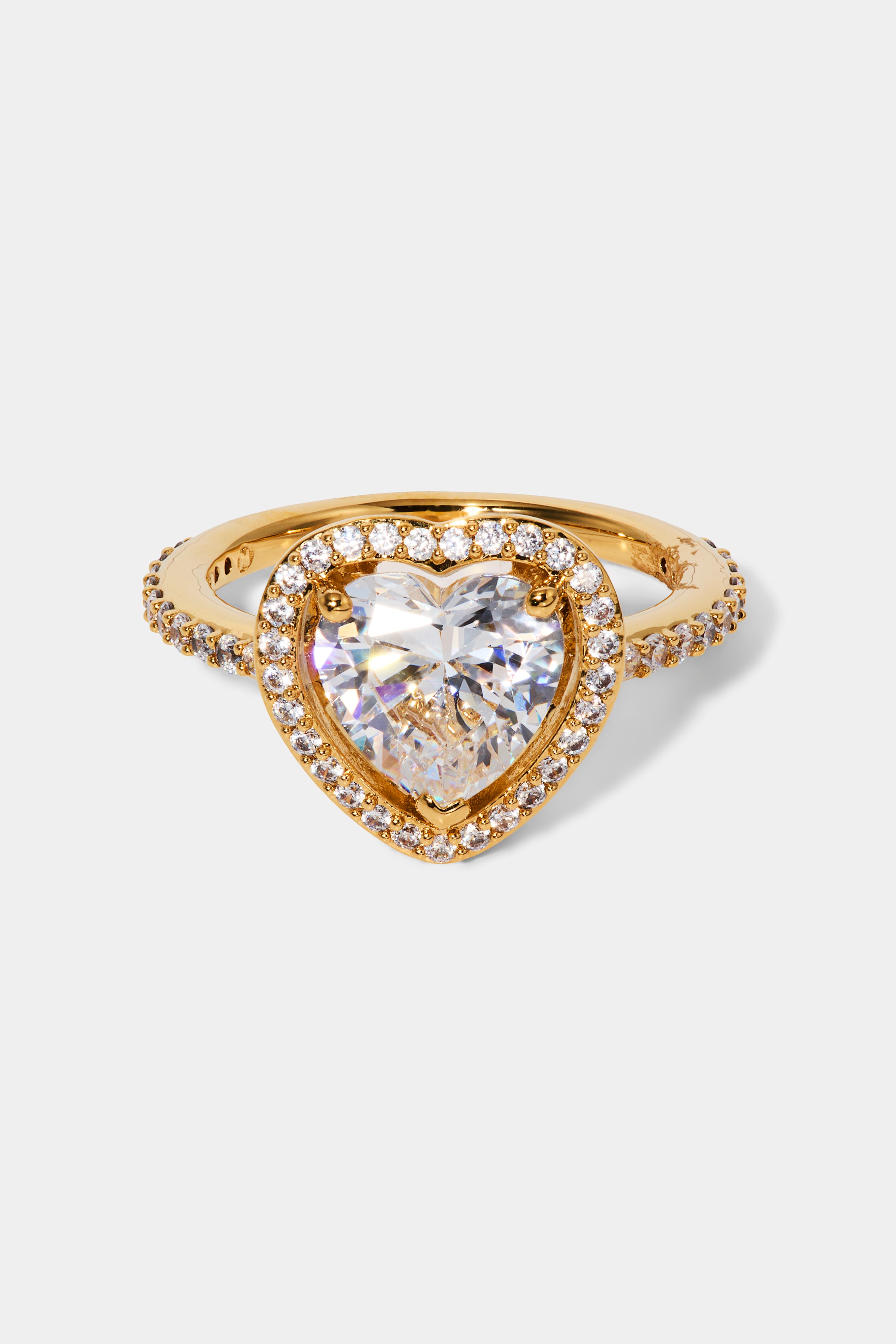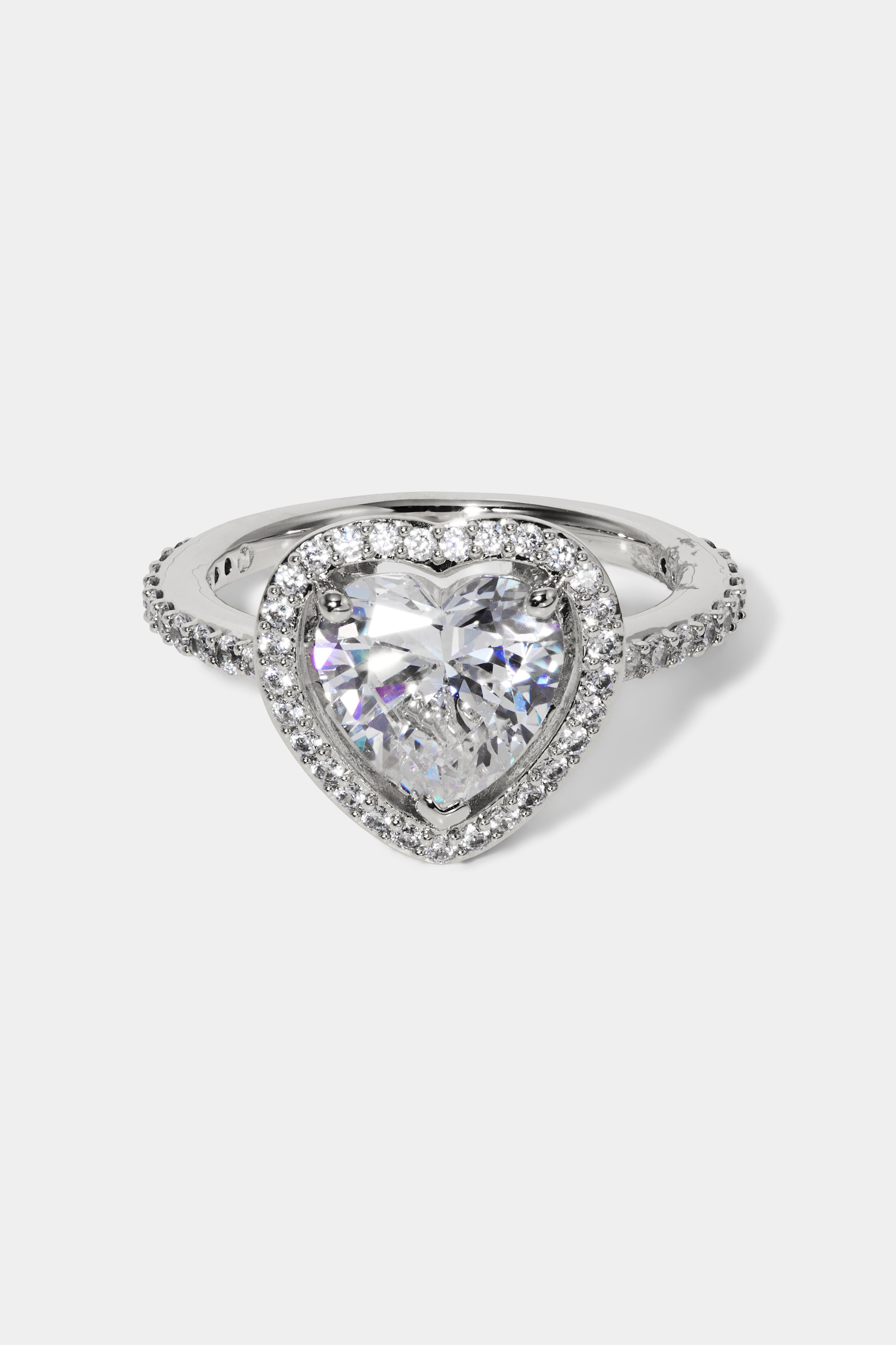 A timeless expression of affection. This elegant ring features a heart-shaped center stone encircled by pavé brilliance, offering everyday romance with elevated polish.