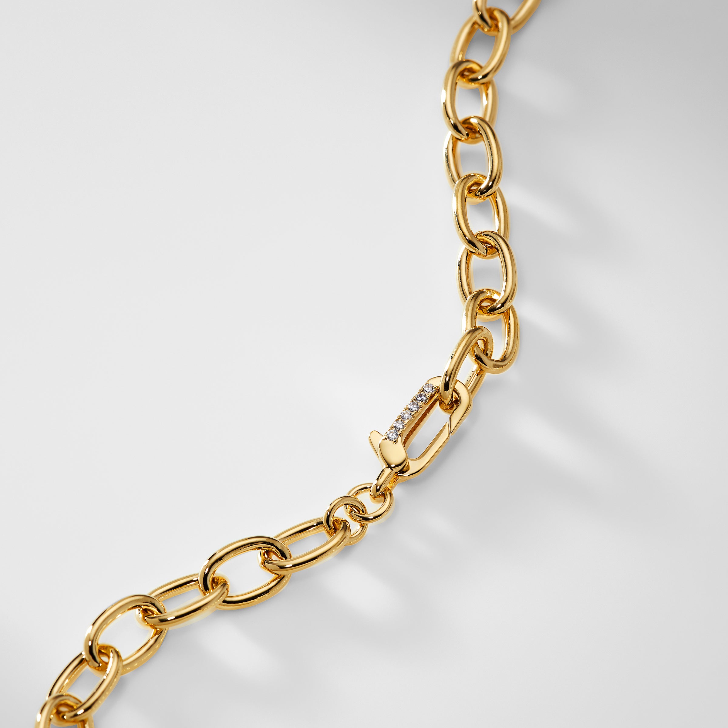 Get in on the latest trend by styling this chunky chain necklace with other styles for the ultimate layered look.