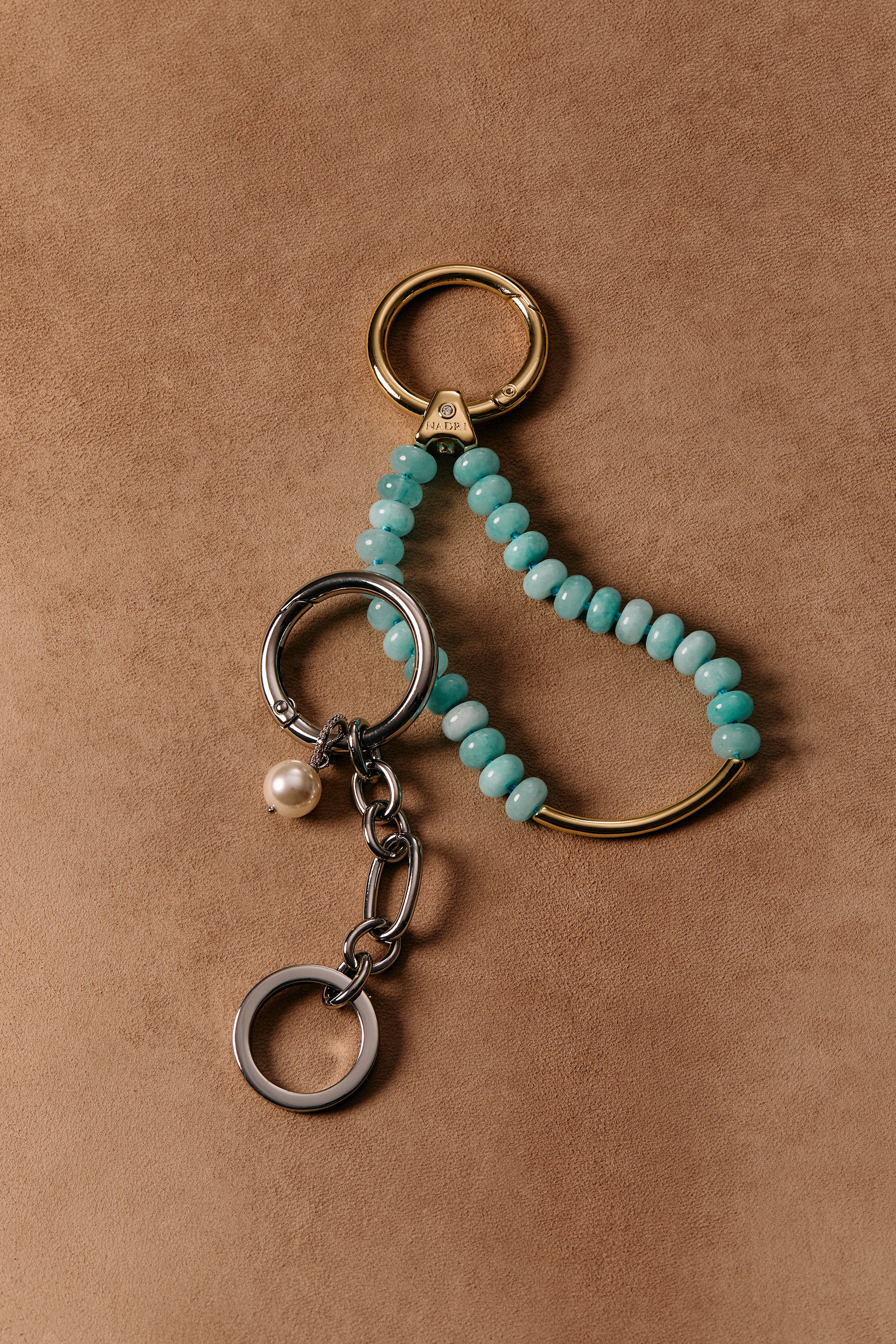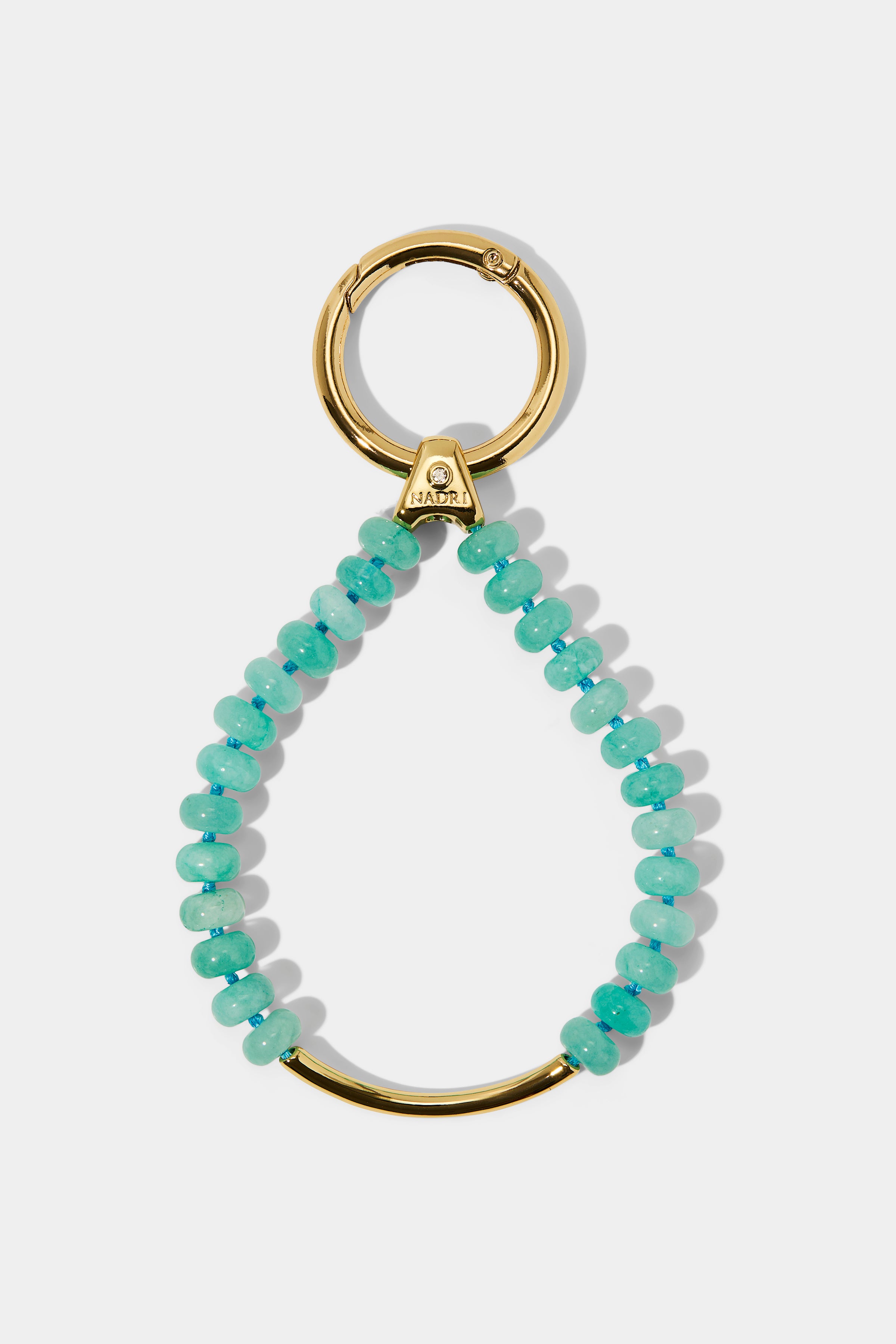 This charm features smooth green semi-precious beads strung along a polished gold-tone metal loop, bringing a vibrant yet refined accent inspired by coastal escapes.