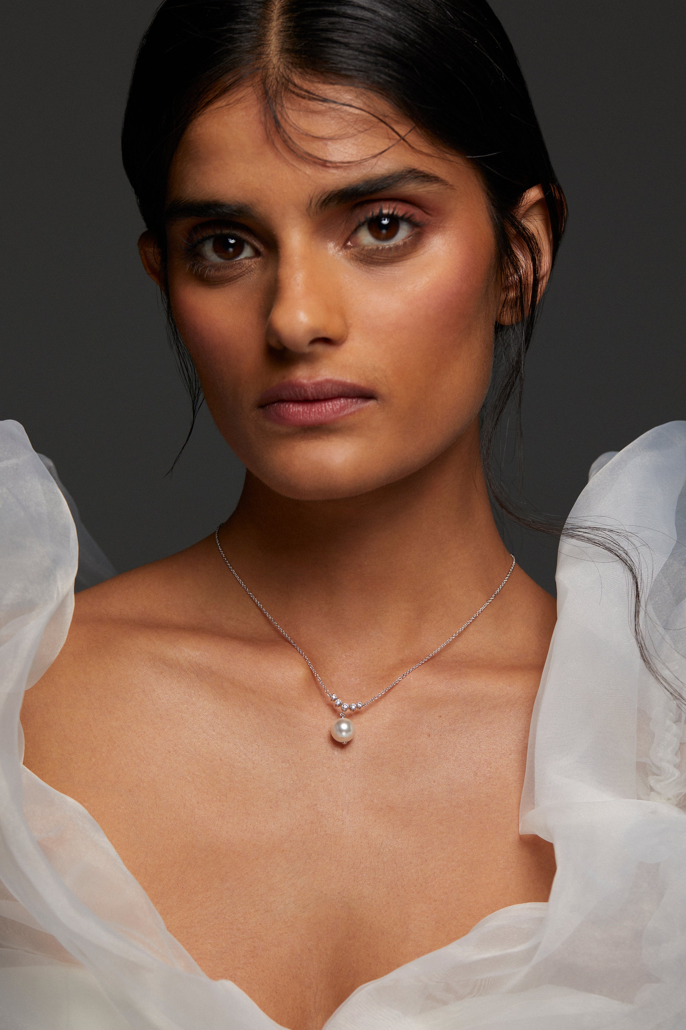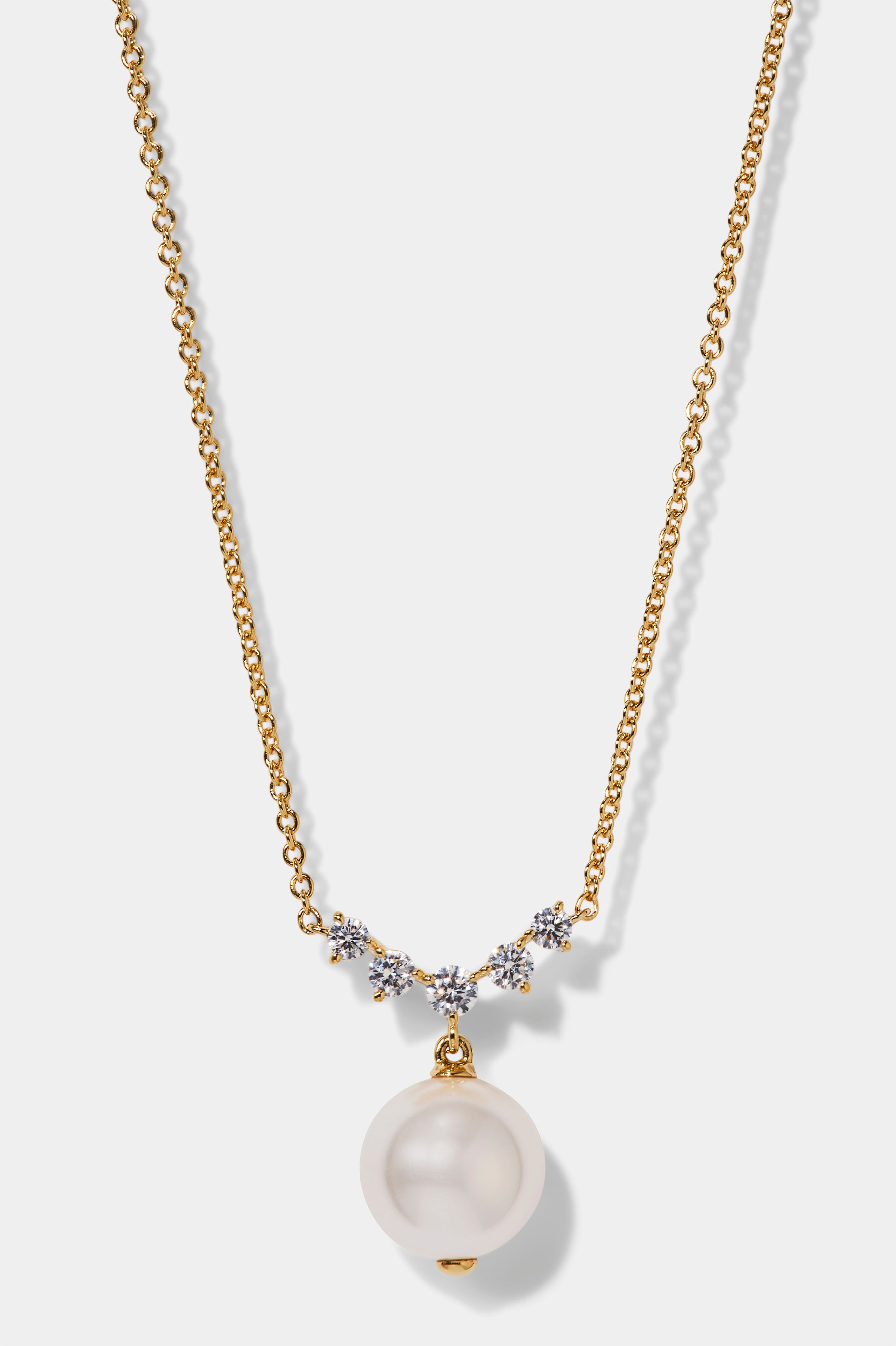 Sleek and sophisticated, this pendant necklace pairs a luminous pearl drop with a halo of CZ sparkle. An effortless way to elevate any look.