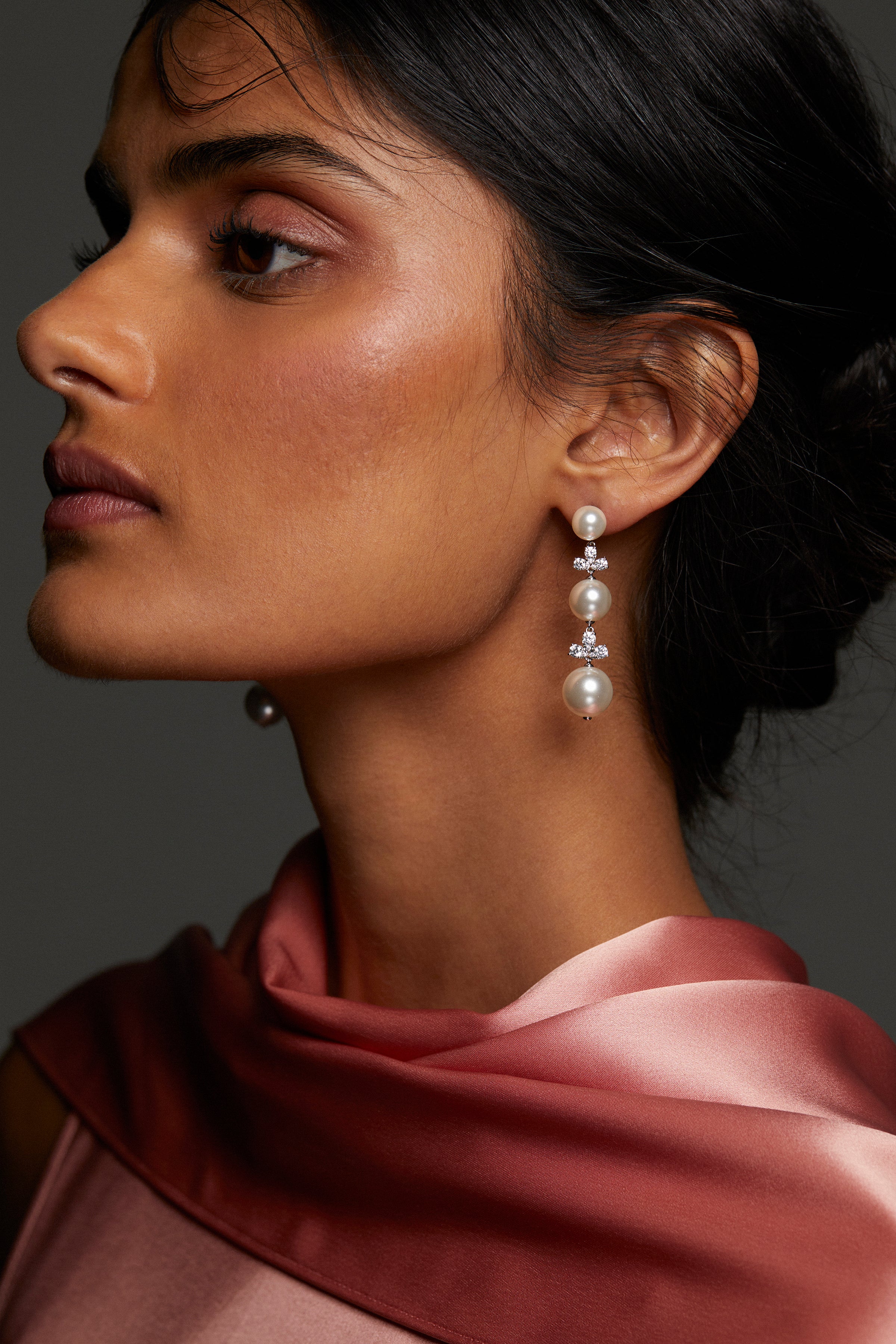 Streamlined and chic, these earrings pair luminous pearls with CZ sparkle for a look that’s both modern and romantic.
