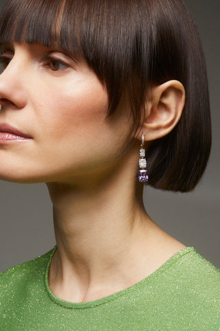 NORTHERN LIGHTS EMERALD CUSHION PURPLE CZ DOUBLE DROP EARRINGS