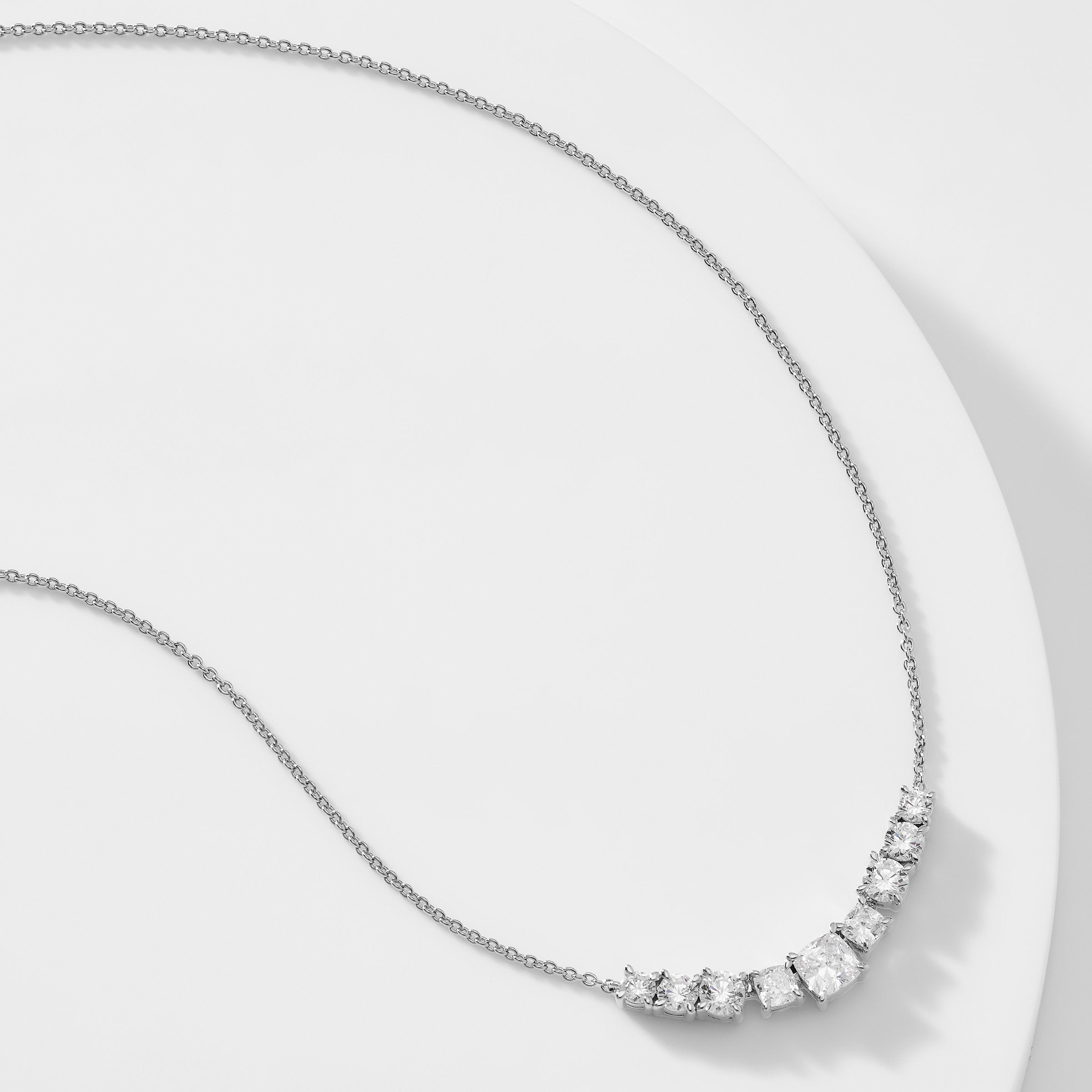 This simple and chic frontal necklace adds a touch of sparkle to any neckline with an elegant mix of round and cushion-shaped cubic zirconia stones.