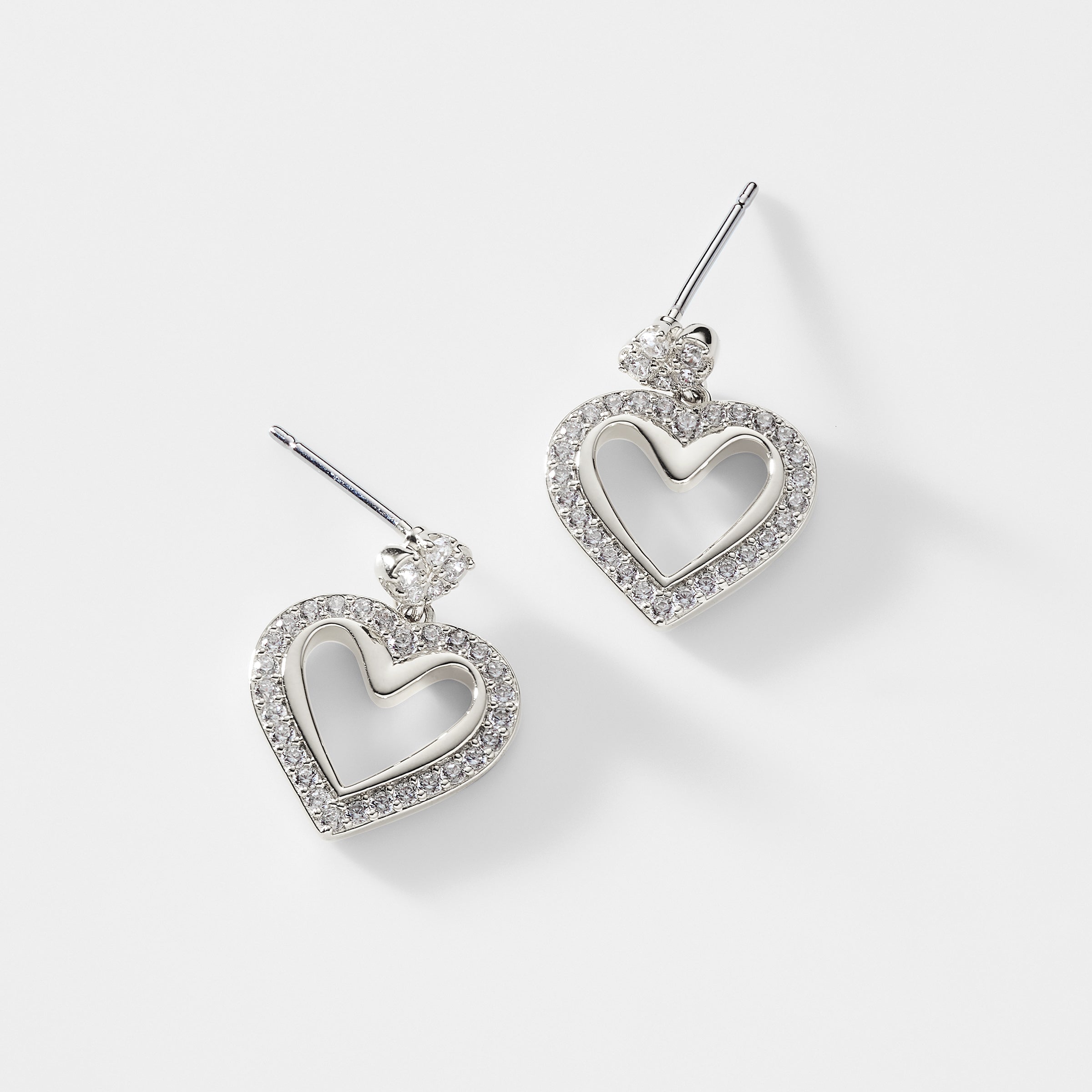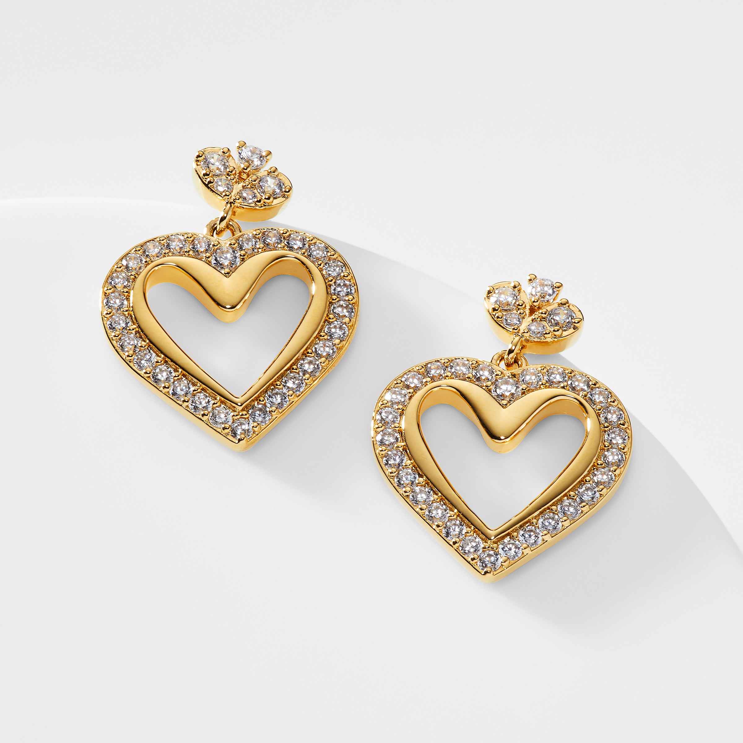 A pave CZ and gold heart add flair to these sparkling drop earrings which make the perfect gift for someone you love or for yourself.