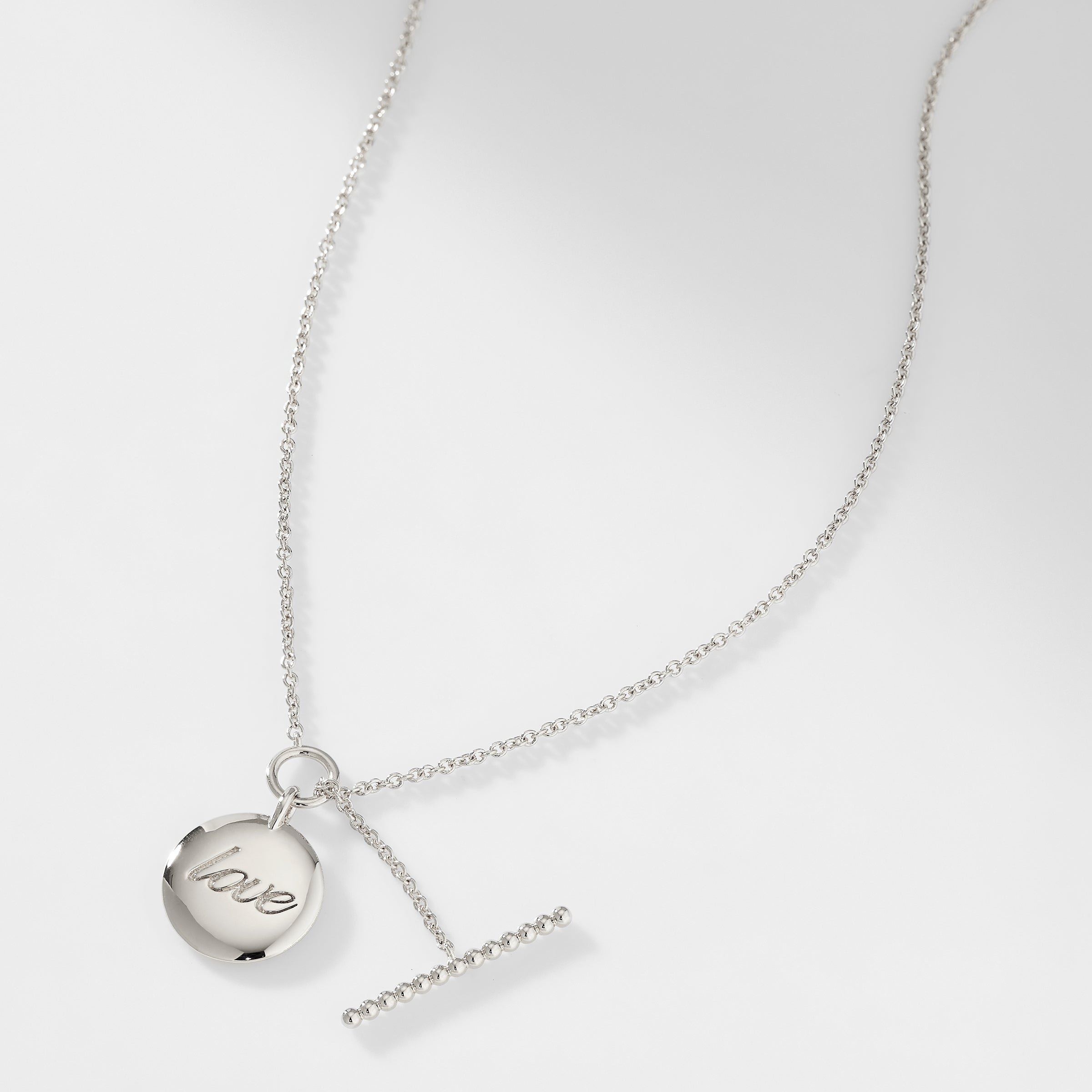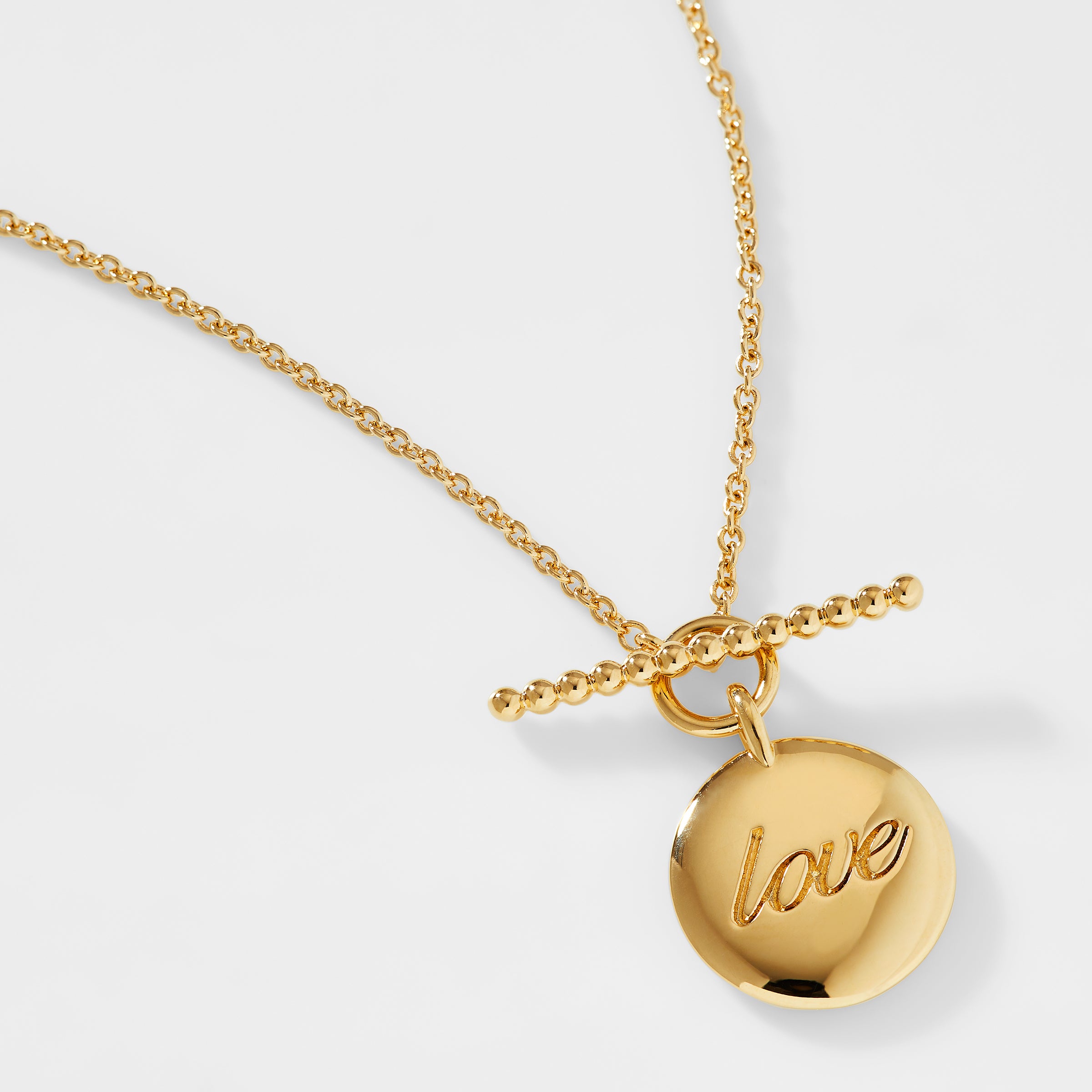 Make a statement with the sweetest sentiment in this unique toggle closure "Love" necklace.