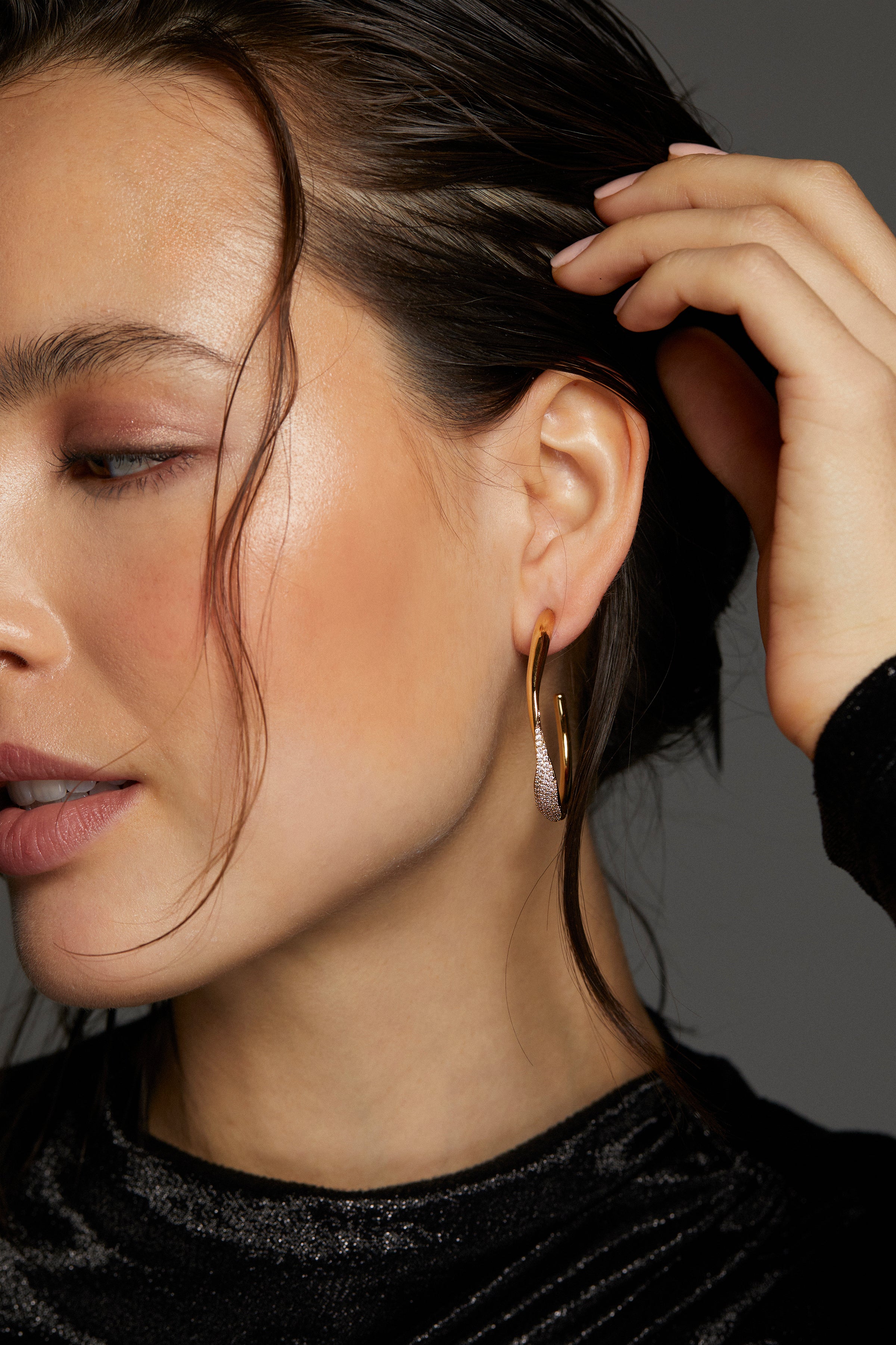 Sculptural and sleek, these large ribbon-style C hoops feature graceful curves and a high-shine finish. The perfect mix of softness and structure to elevate your everyday rotation.