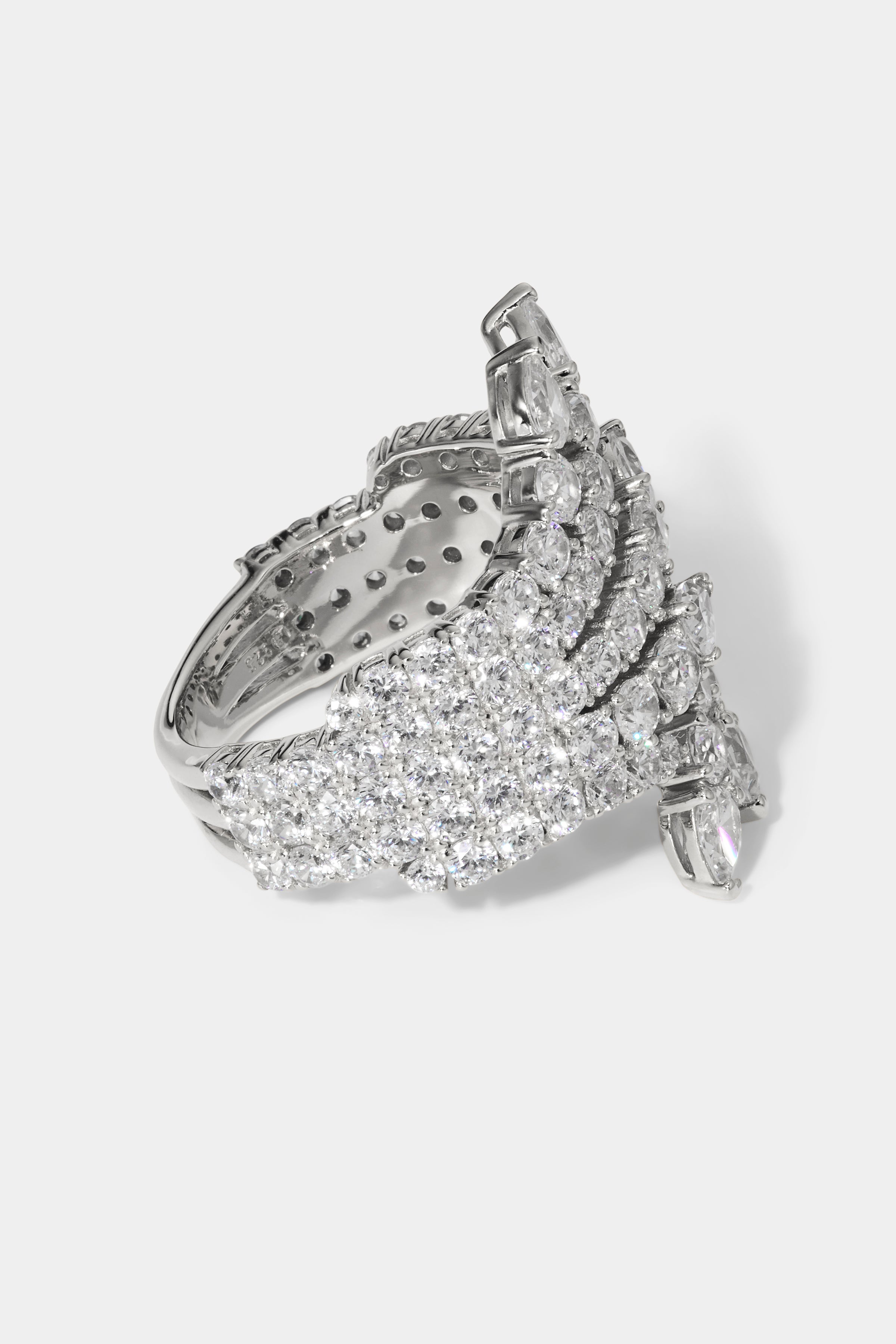 This flared fan ring brings a burst of sparkle to your stack. Pave CZs and a dramatic silhouette make it a true statement in motion.