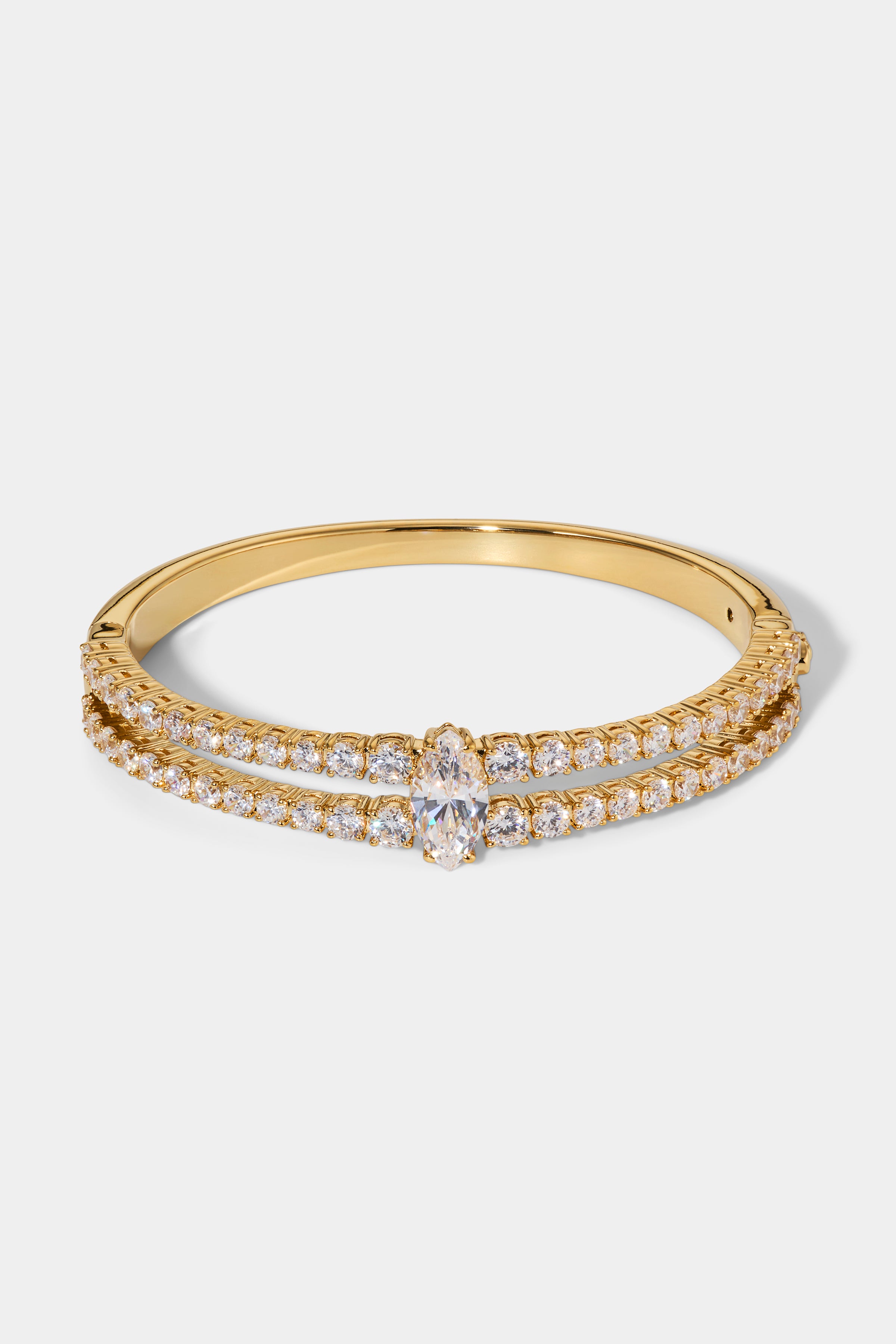 Easy on, easy off, always polished. This sleek bracelet features a side hinge and a low-key shine you’ll want to wear 24/7.