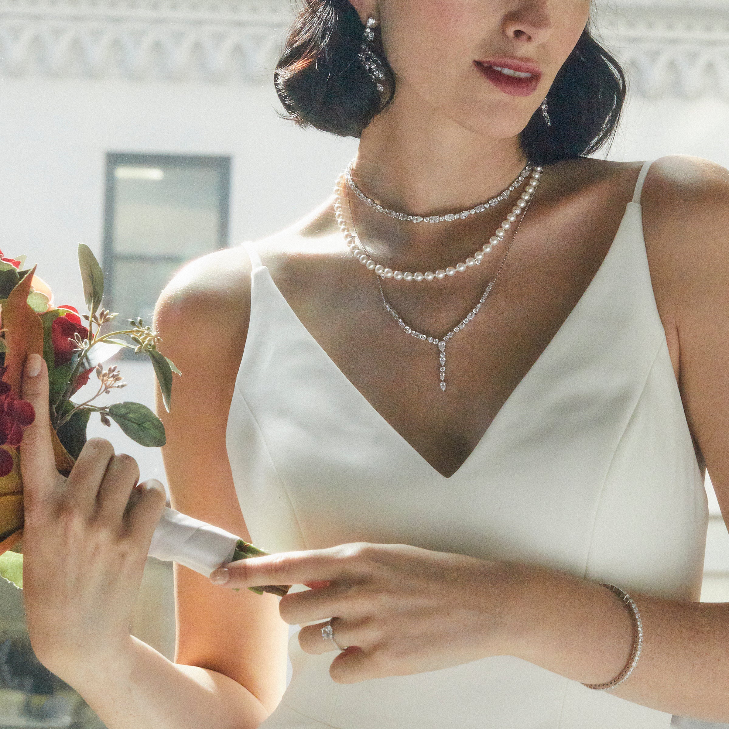 The mixed CZ stones on this y-necklace add a glamorous touch to a classic silhouette that will compliment any neckline.