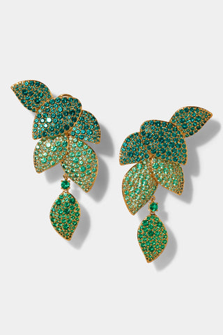 Fresh and refined. These green earrings are designed with a graceful leaf motif and warm gold plating for a luminous finish that brings a pop of color to any look.